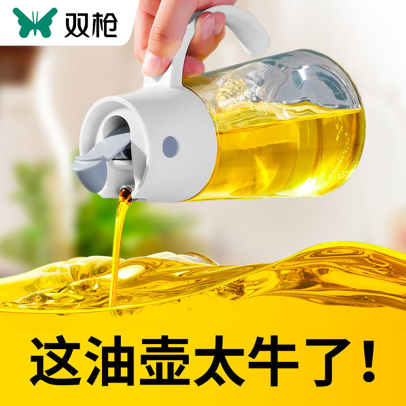 双枪油壶厨房家用玻璃自动开合调料不挂油酱油食用油防漏油瓶油罐