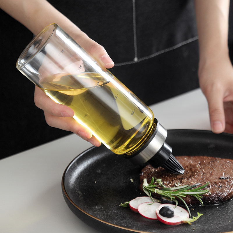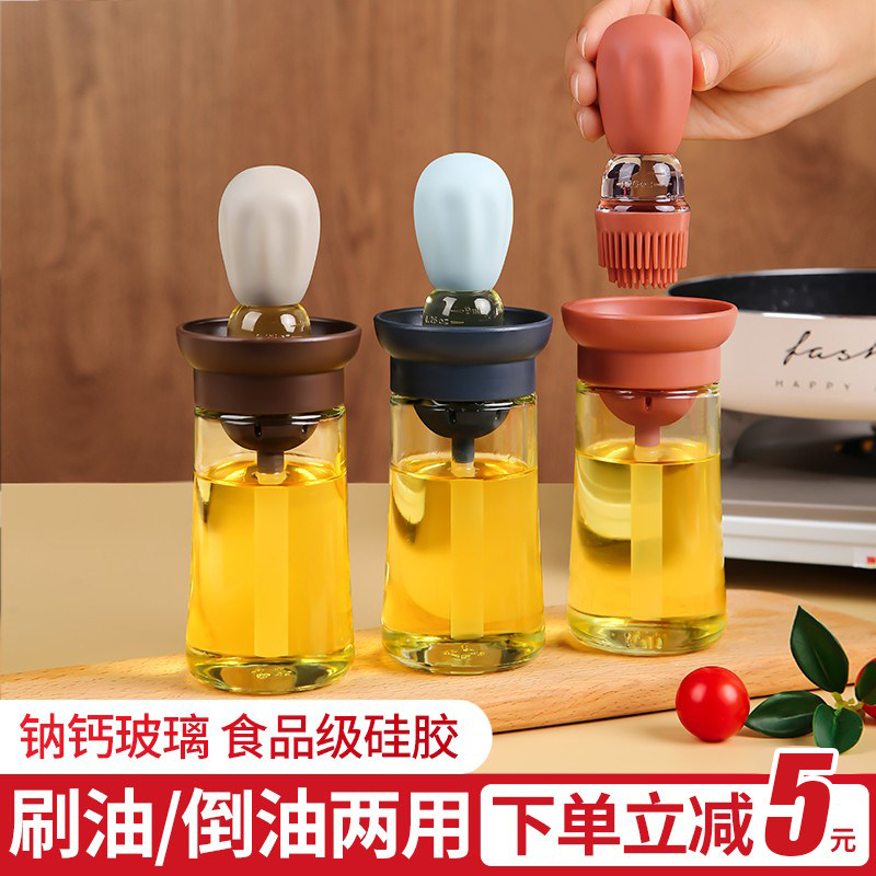 日式玻璃计量油壶油瓶带刷家用硅胶油刷带瓶耐高温食品级刷油神器
