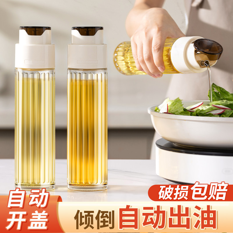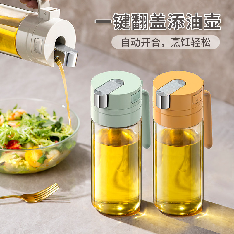 不挂油厨房玻璃油壶自动开合大容量防漏油罐日式家用酱油醋调味瓶