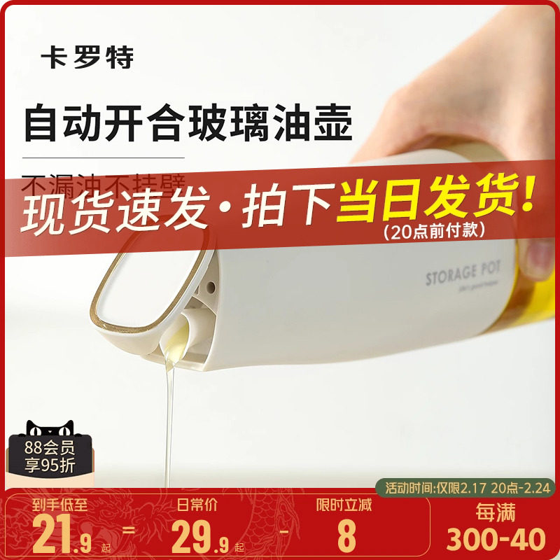 卡罗特油壶玻璃自动开合油罐瓶厨房家用中硼硅不挂油调料瓶油壸