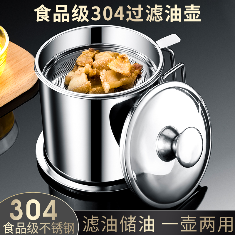 304不锈钢油壶大容量过滤油渣装储热猪油罐家用油瓶 厨房用滤油罐