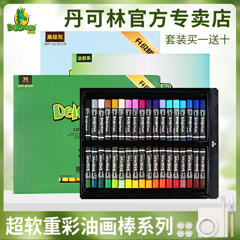 丹可林油画棒重彩油画棒软性油画棒三代升级重彩棒儿童安全无毒可水洗蜡笔delgreen油画棒36色送礼油画棒套装