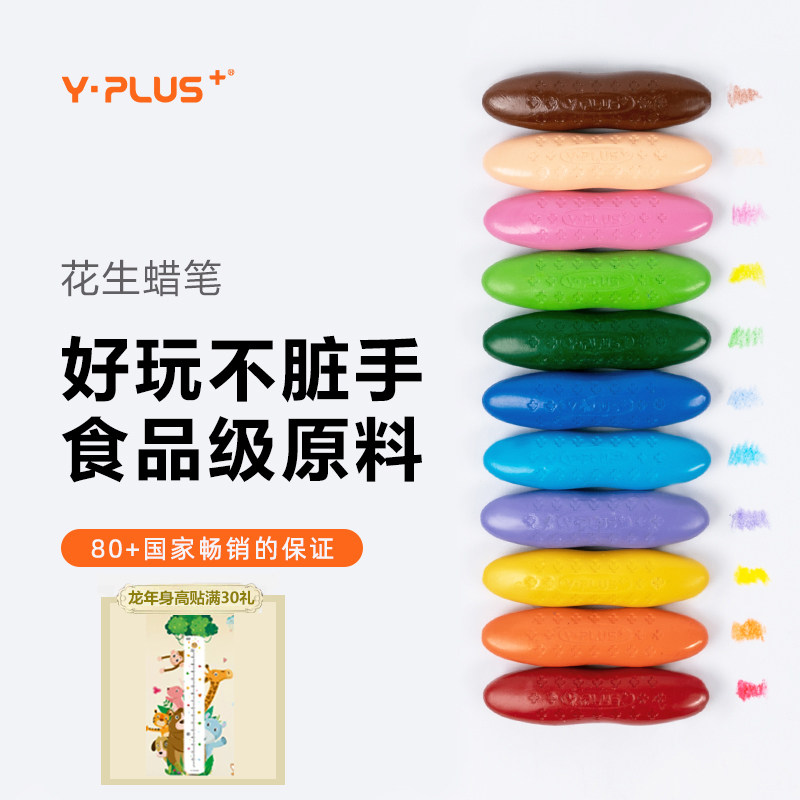 YPLUS儿童花生蜡笔安全画画笔12/24/36色绘画套装幼儿园油画棒宝宝婴儿腊笔不脏手可水洗创意文具美术用