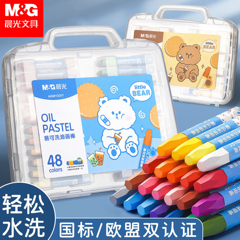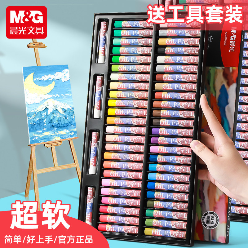 晨光重彩油画棒套装莫兰迪马卡龙24色学生专用安全水洗水溶性36色涂鸦绘画蜡笔画美术专业软性油性48色工具纸
