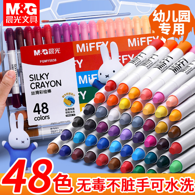 晨光油画棒蜡笔安全无毒不脏手小学生美术专用可水洗儿童米菲画画笔幼儿园彩笔套装不粘手24色36色腊笔涂色笔