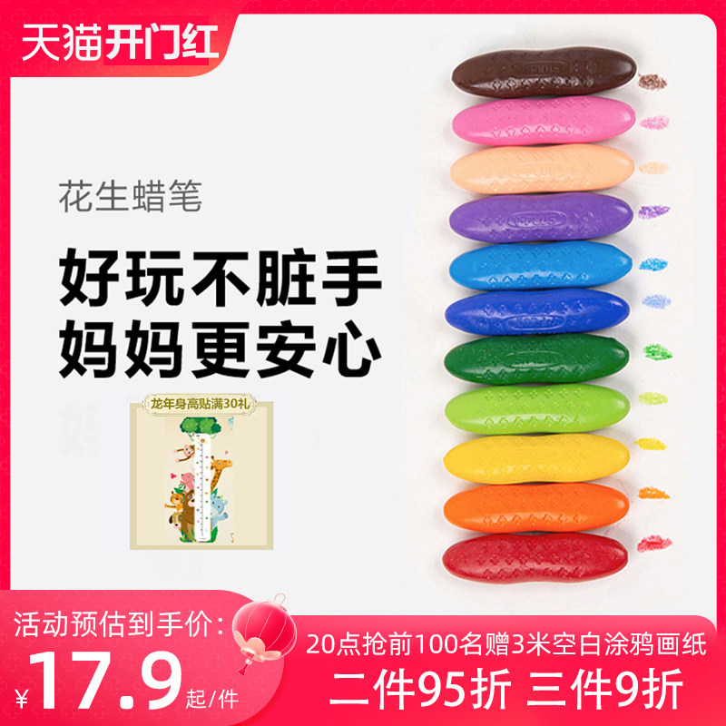 花生飞侠儿童大花生蜡笔不脏手安全无毒可水洗蜡笔幼儿园握姿12色彩色笔宝宝画画笔婴儿涂鸦笔涂色油画棒控笔