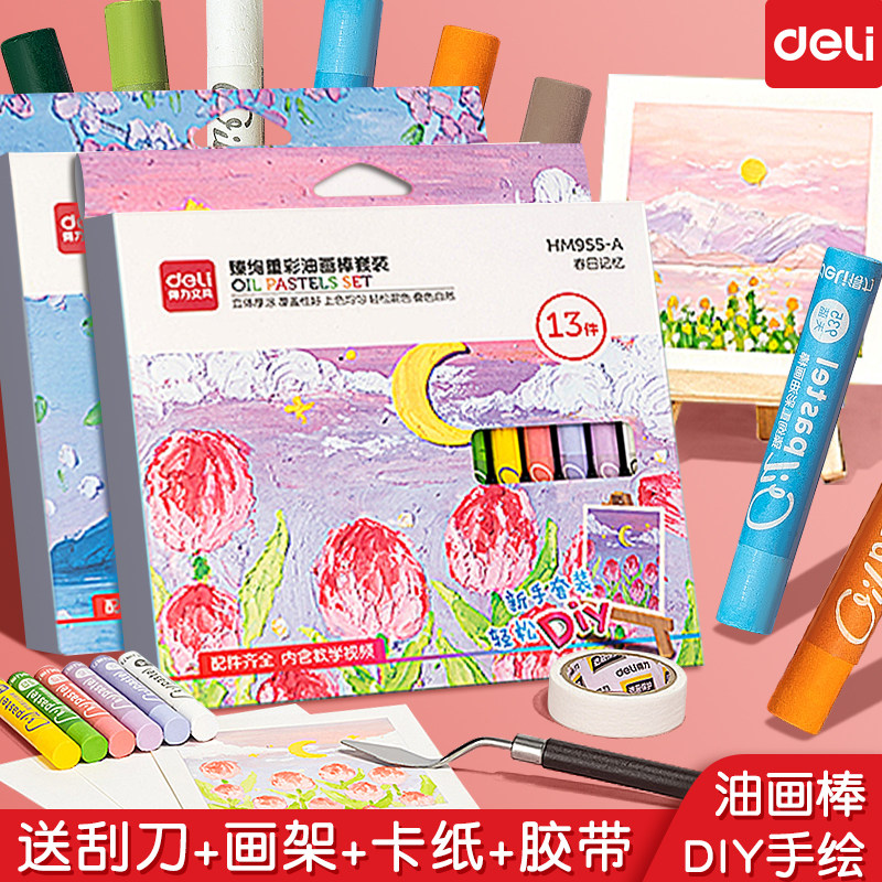 得力重彩油画棒diy画儿童油画棒套装刮刀工具蜡笔软性油画棒初学者莫兰迪六一儿童节礼物送礼生日礼物礼盒