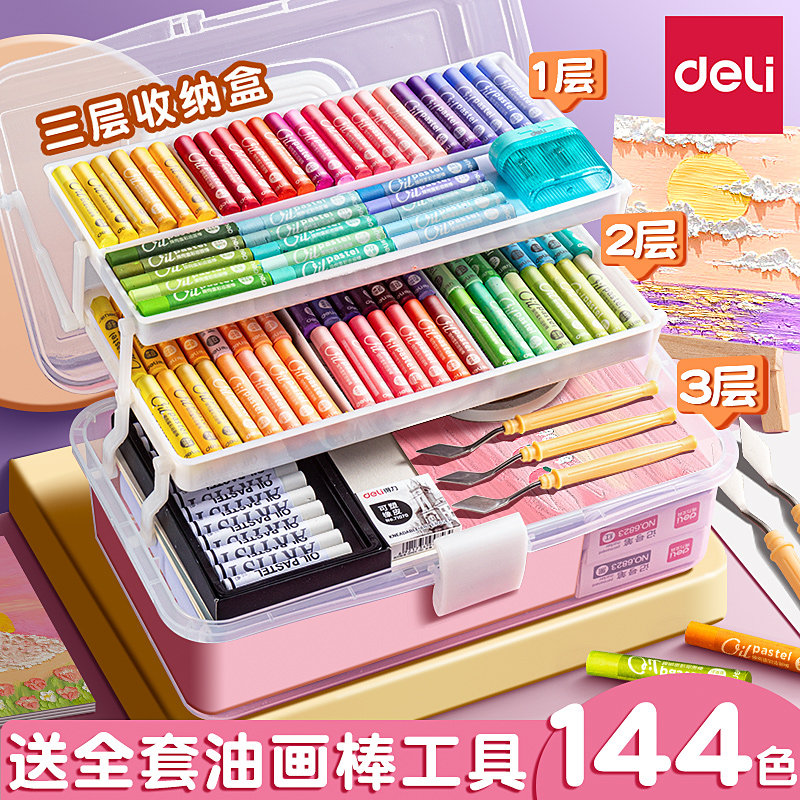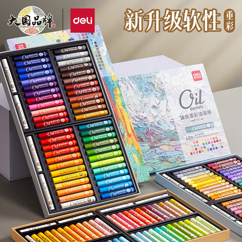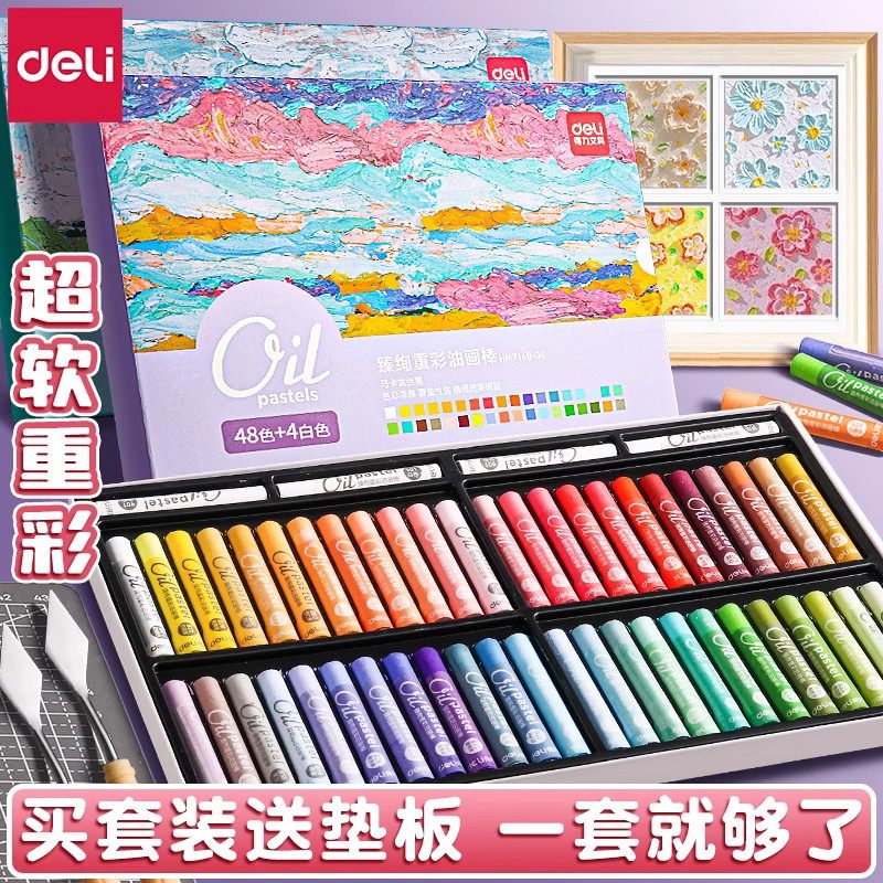 得力超软重彩油画棒diy画软性蜡笔美术小学生专用纸36色24色48色马卡龙莫兰迪专业画笔刮刀油性绘画工具套装