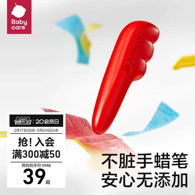 babycare宝宝羽毛丝滑蜡笔bctoys涂鸦画笔可水洗不脏手粘手安全幼儿园彩虹油画棒儿童12/24色温和0刺激不易断