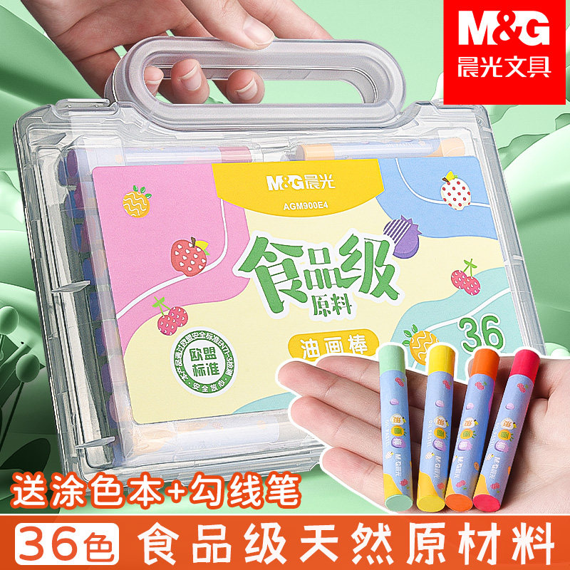 晨光油画棒蜡笔儿童安全无毒不脏手可水洗幼儿园美术专用炫彩棒24色腊笔套装36色彩绘棒小学生涂色笔彩色笔