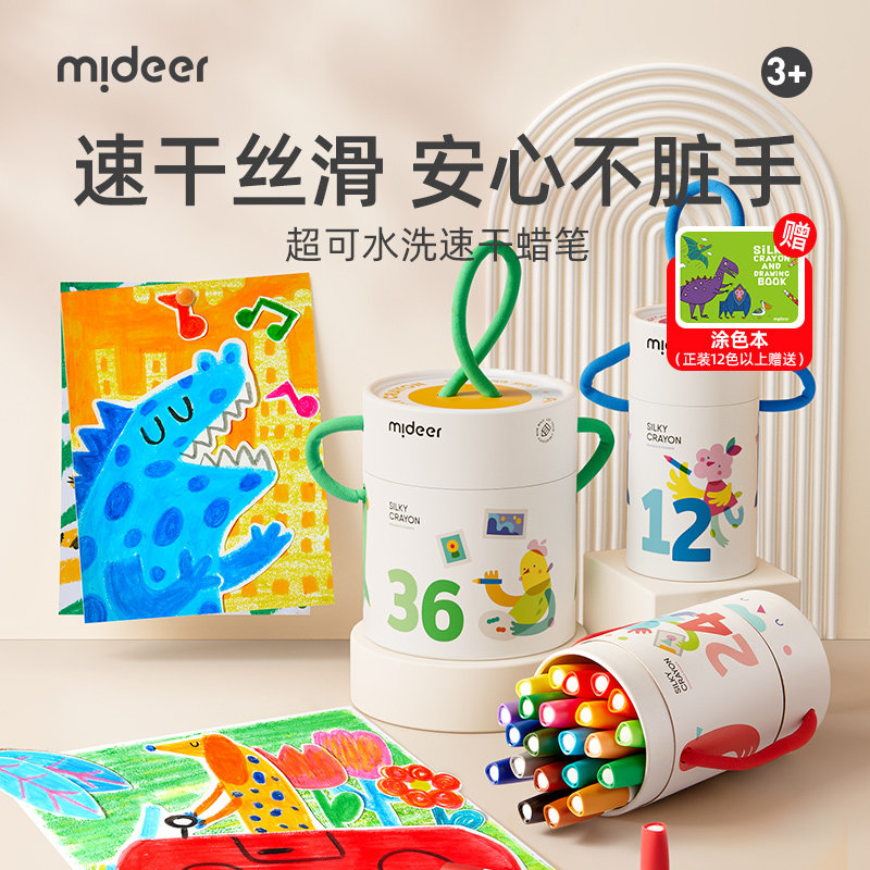 mideer弥鹿丝滑速干蜡笔油画棒不脏手无毒可水洗儿童安全水溶性画笔炫彩棒幼儿园专用彩笔宝宝画画笔缤纷桶