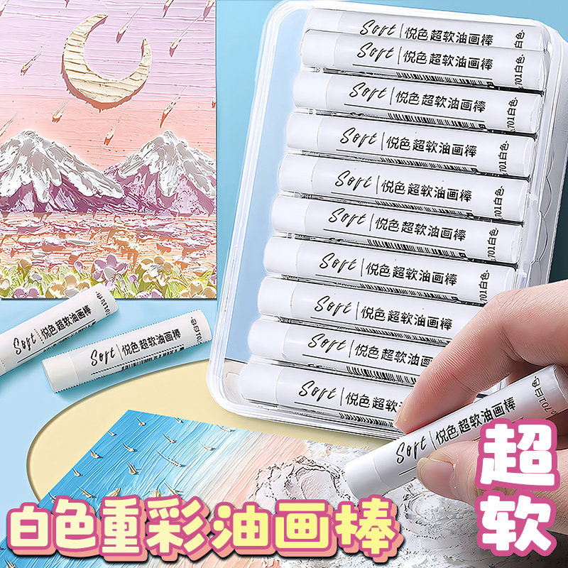 重彩油画棒白色软性蜡笔超软重彩棒套装儿童diy画腊色笔刮画初学者画框刮刀专用工具材料包可水洗安全无毒软