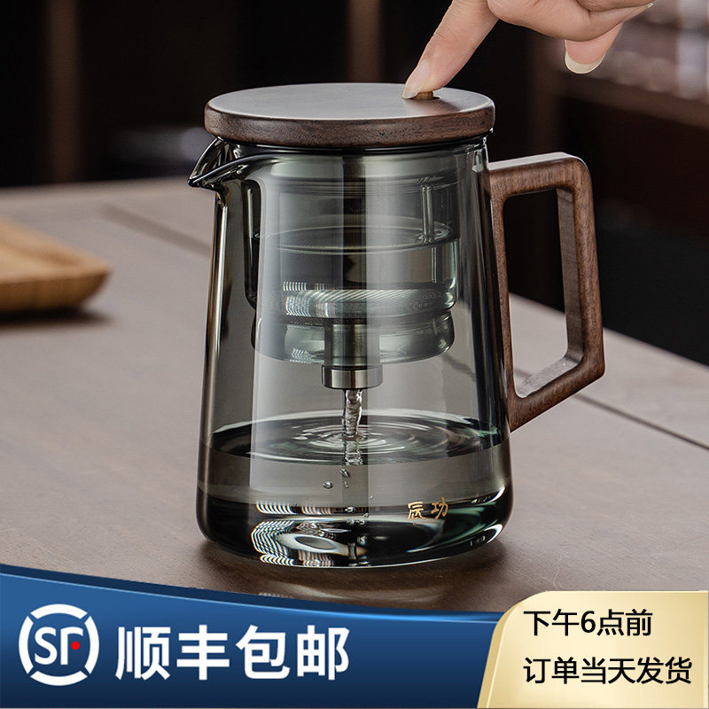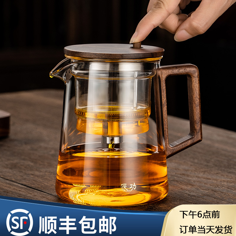 飘逸杯泡茶壶家用胡桃木沏茶过滤内胆茶水分离全玻璃冲茶器泡茶杯
