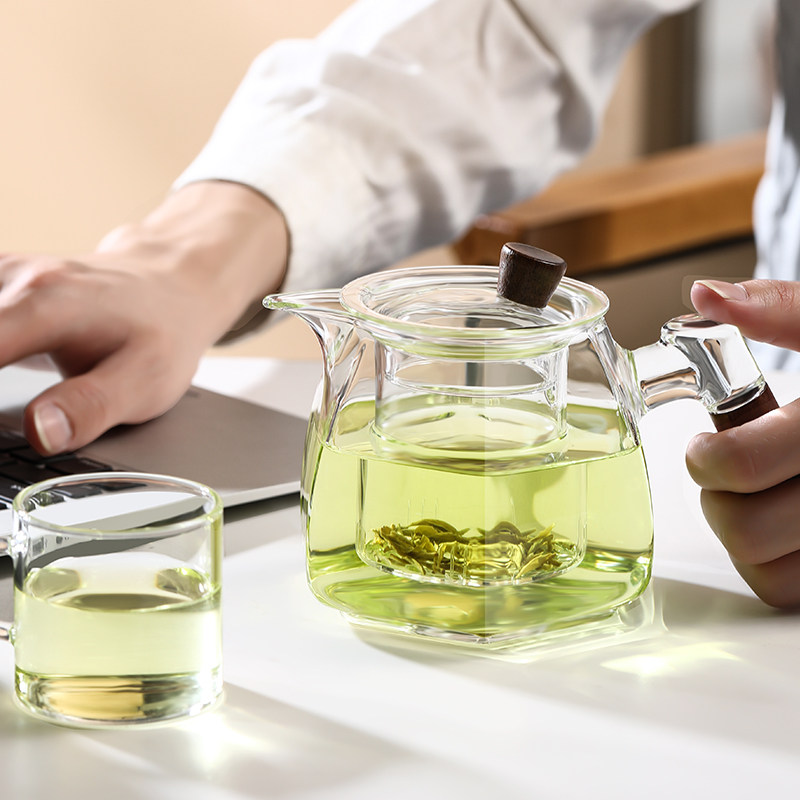 玻璃茶壶家用耐高温泡茶器茶具套装木把泡茶壶茶水分离单壶花茶壶