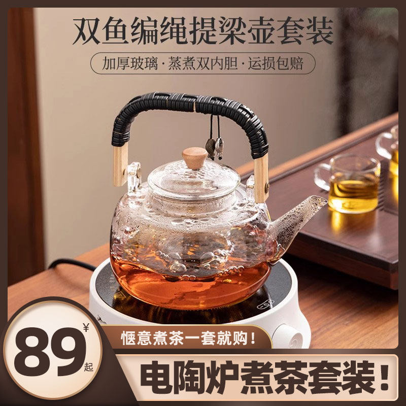提梁壶煮茶玻璃烧水壶耐高温煮茶器电陶炉套装家用泡茶壶2024新款