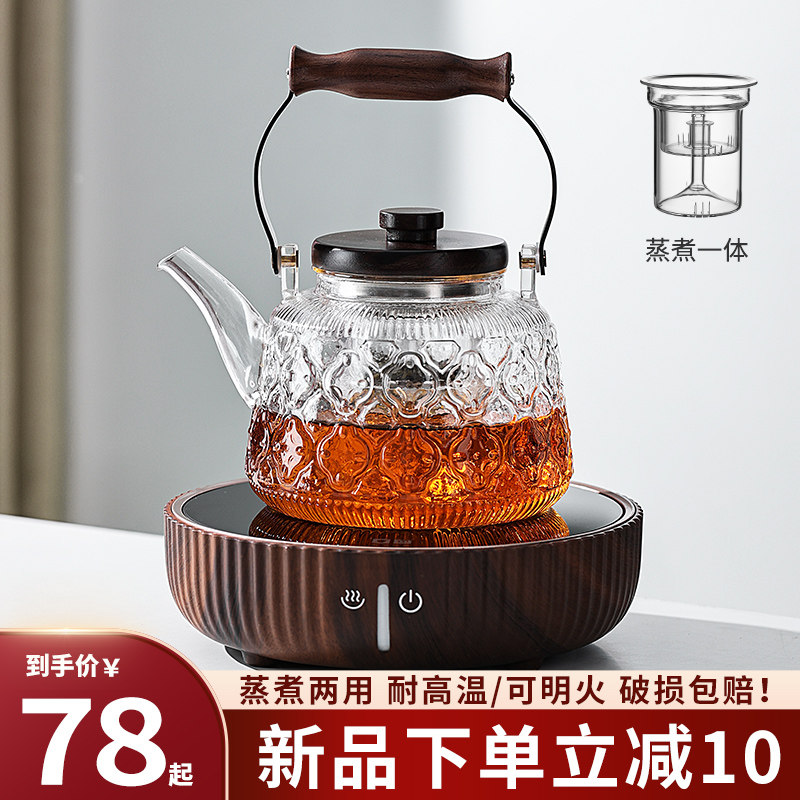 蒸煮一体玻璃茶壶1.3L大容量电陶炉加热全自动煮茶器烧水泡茶专用