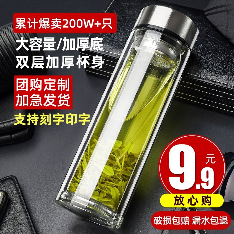 仝器双层玻璃杯男女士便携隔热带盖家用水杯茶水分离泡茶杯子定制