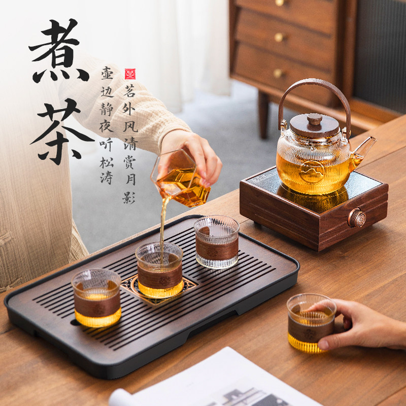 电陶炉煮茶壶器烧水泡茶专用蒸煮玻璃茶具一体机2024新款家用套装