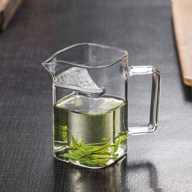 加厚玻璃公道杯绿茶泡茶器泡茶壶耐热方形月牙过滤茶漏一体分茶器