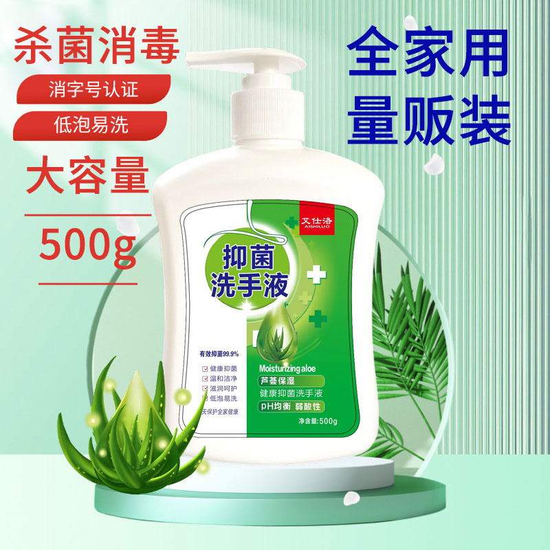 医院学校家用儿童抑菌洗手液芦荟香抗菌杀菌消毒泡沫型按压瓶500g