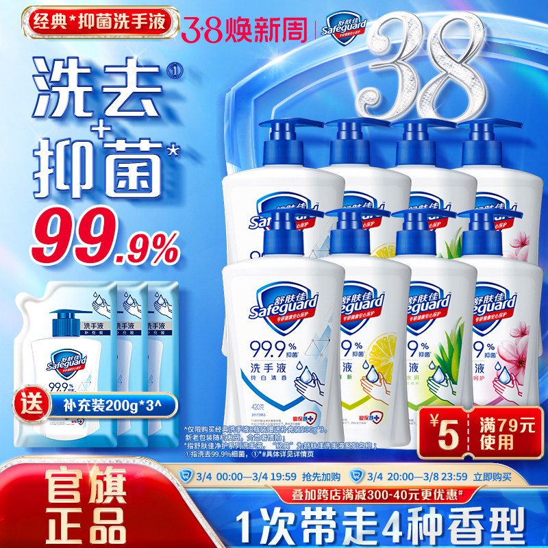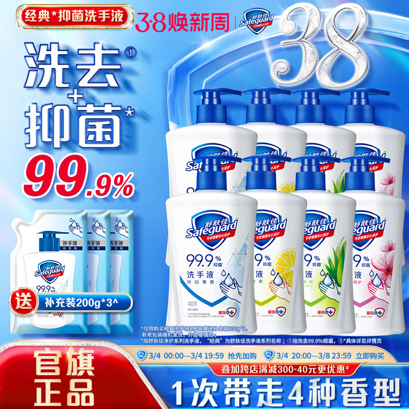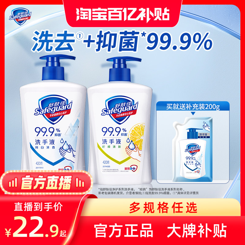 舒肤佳抑菌洗手液420g家用儿童学生纯白柠檬樱花家庭装官方正品