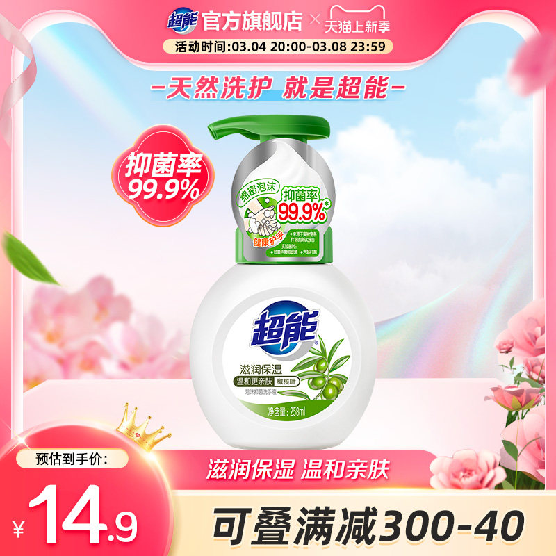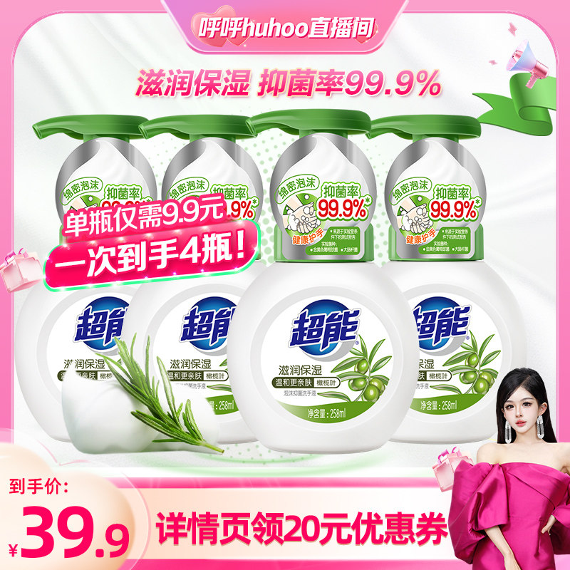 【呼呼直播】超能泡沫抑菌洗手液258ml*4瓶大瓶装滋润保湿家用装