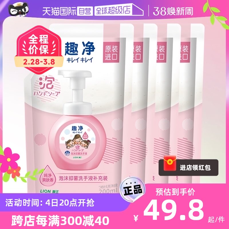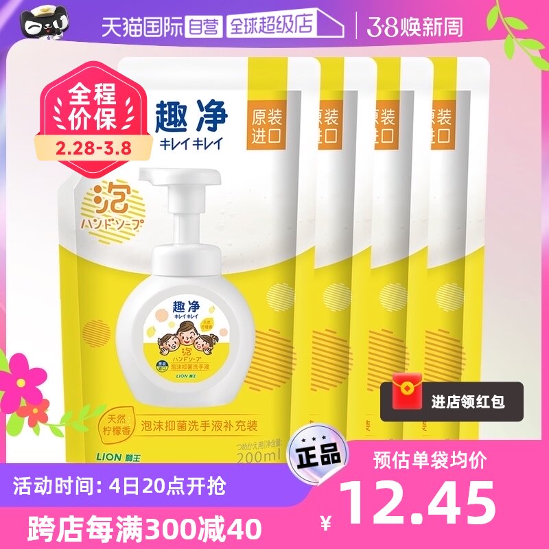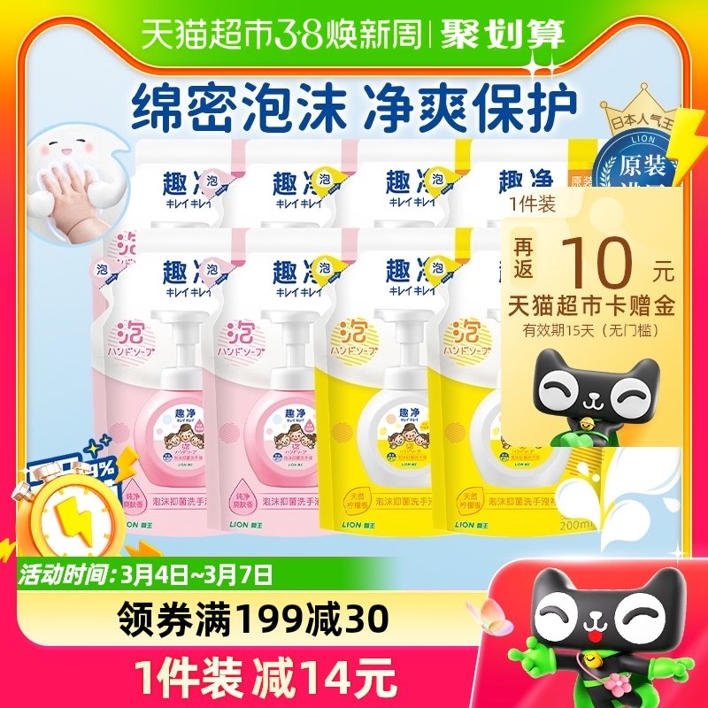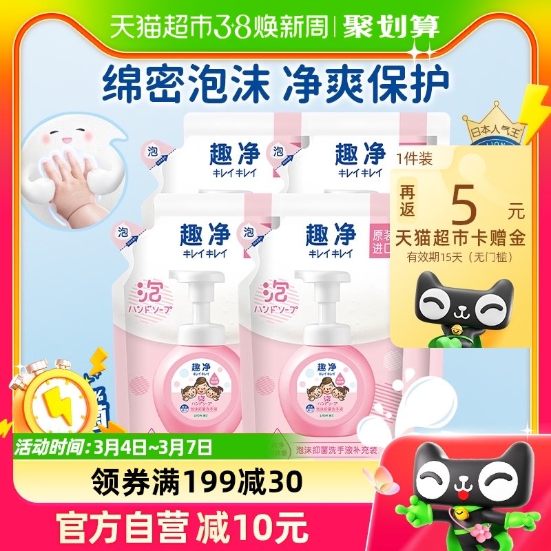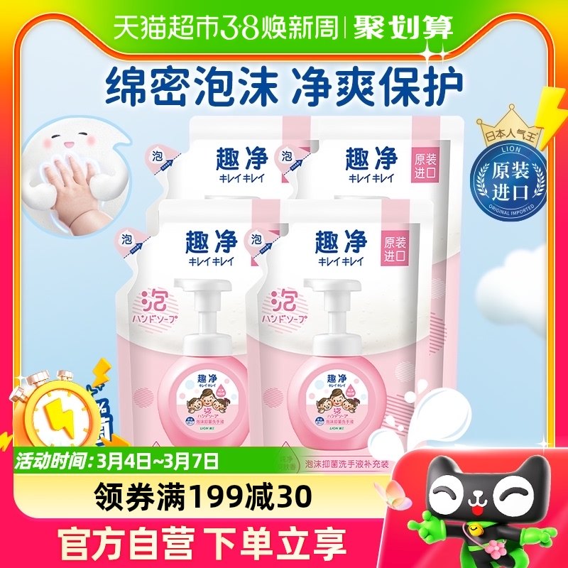【自营】LION狮王泡沫洗手液200ml*4补充装绵密泡沫宝宝泡泡进口