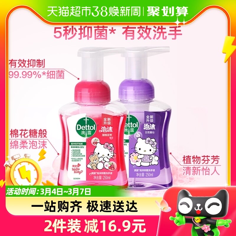 【超值优惠】滴露滋润抑菌洗手液250gHelloKitty清洁护手家用儿童