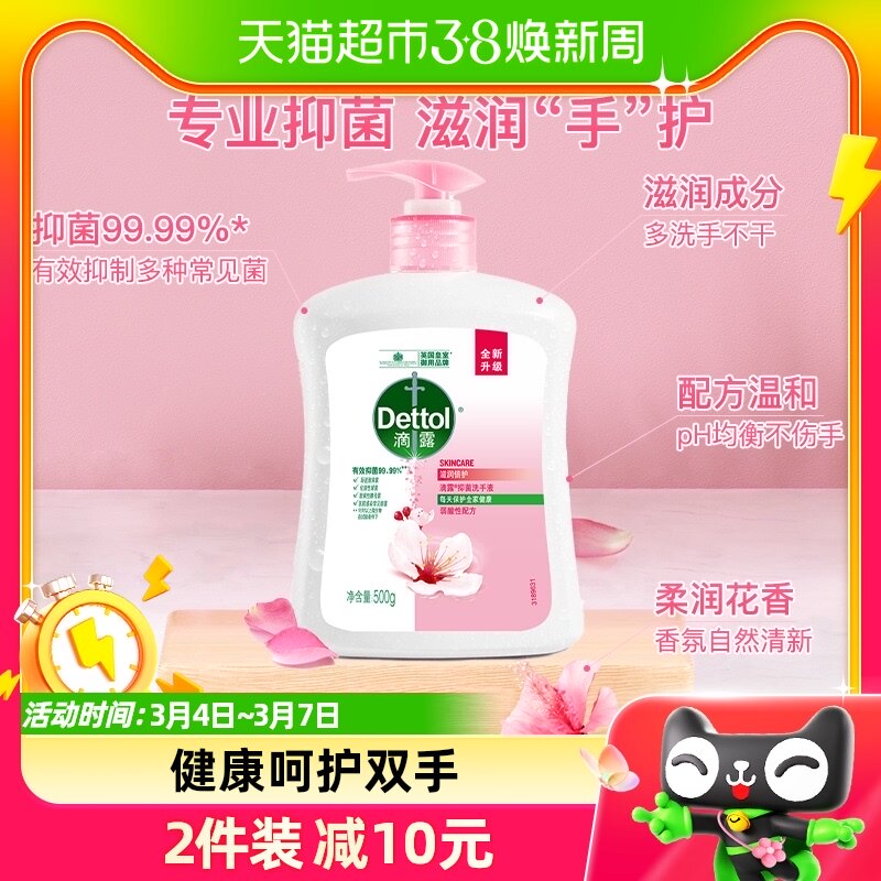 Dettol滴露健康抑菌洗手液滋润倍护500g呵护双手
