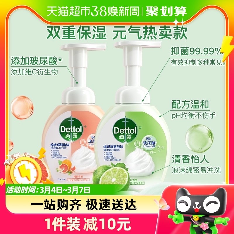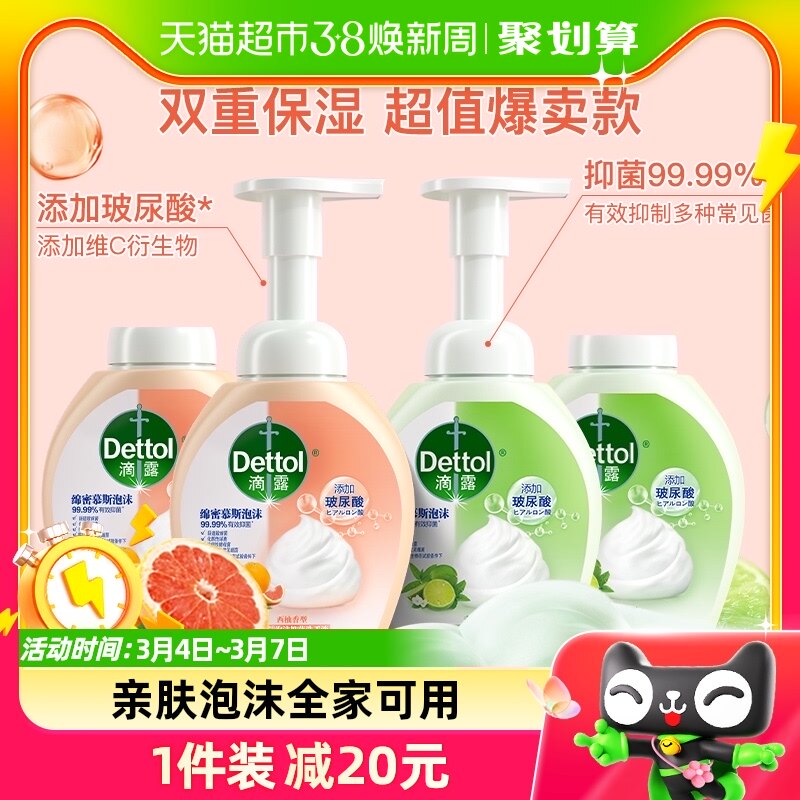 Dettol/滴露泡沫洗手液西柚250ml+青柠250ml添加玻尿酸多洗手不干