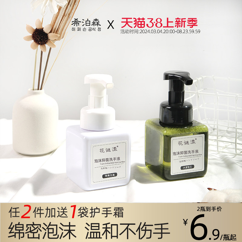 白茶泡沫抑菌洗手液250ml按压瓶植物香型清洁家用补充装慕斯