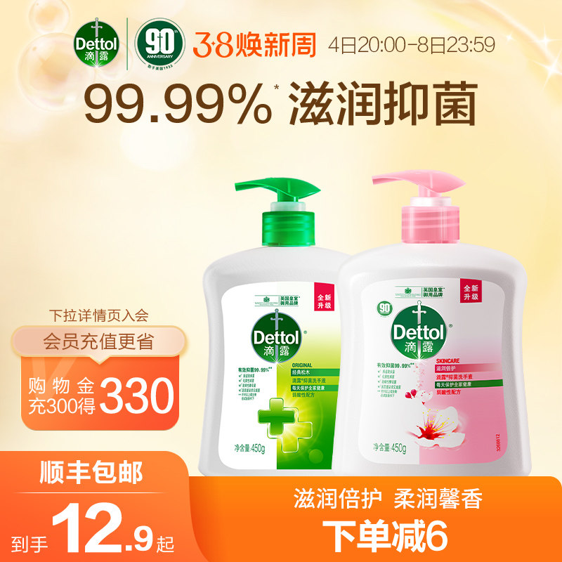 【立即加购】滴露滋润洗手液450g+450g多规格专业抑菌清洁护手