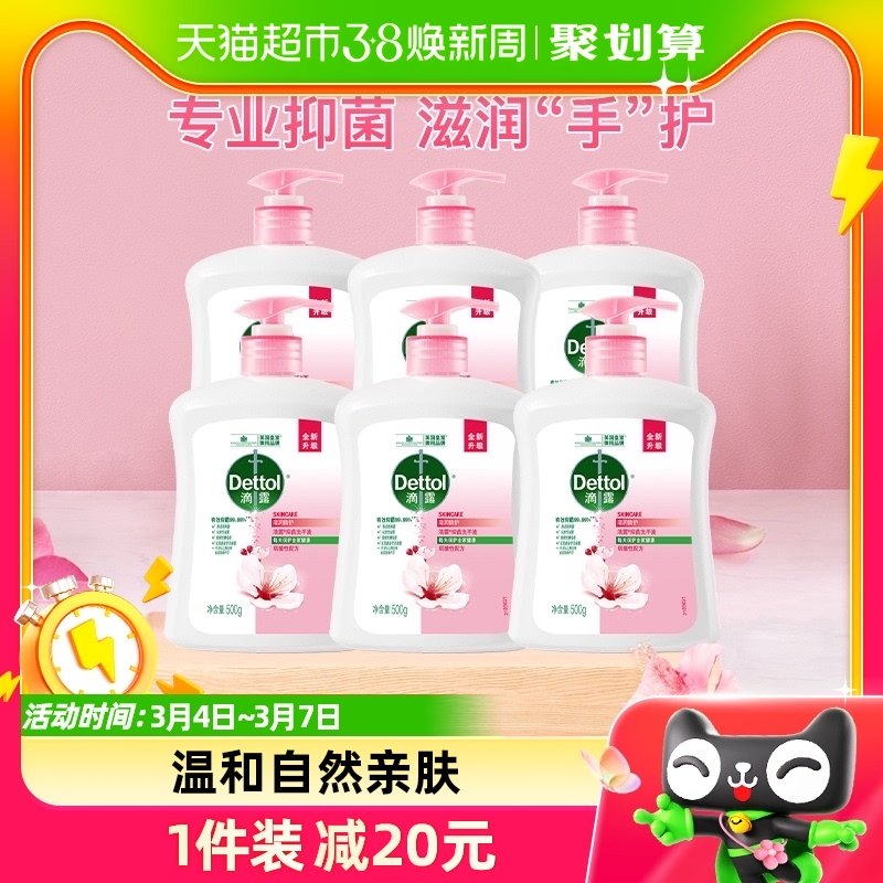 Dettol/滴露洗手液滋润倍护500g*6瓶装补充大桶家庭装泡沫丰富