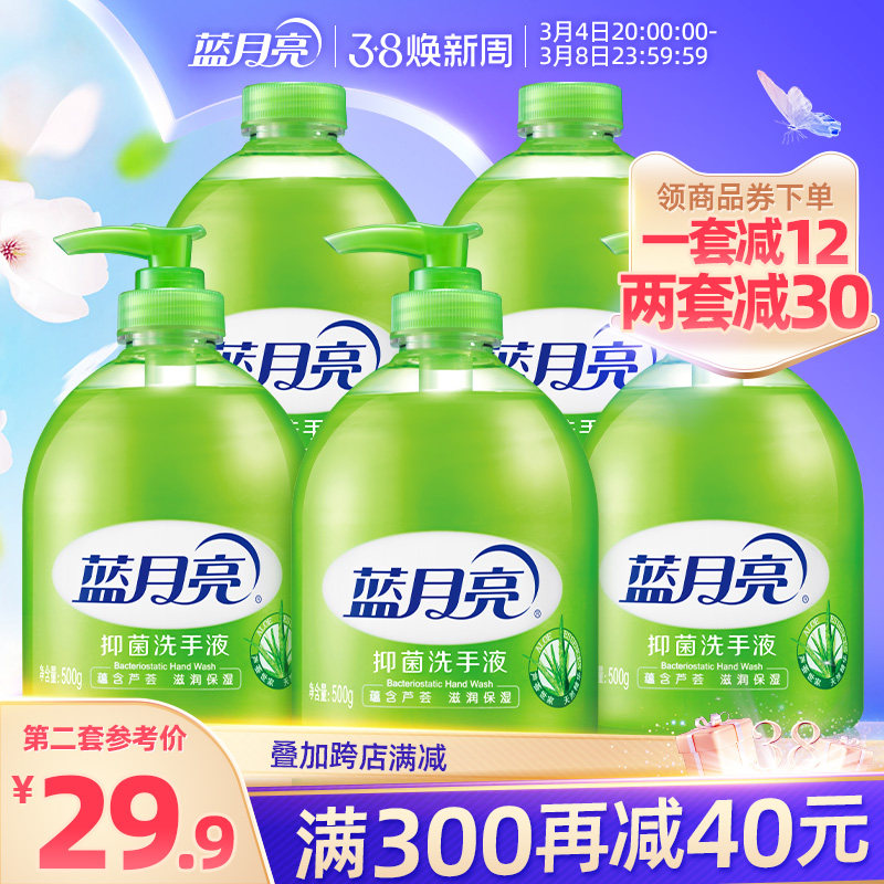 蓝月亮洗手液抑菌芦荟500g*5瓶套装家用囤货装