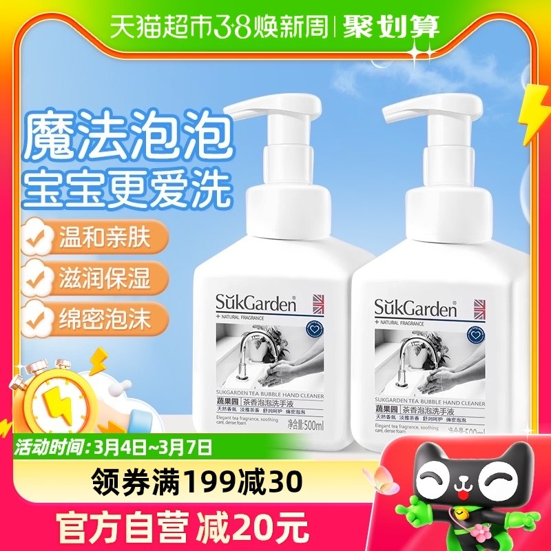 蔬果园茶香泡泡倍护滋润洗手液泡沫型儿童家用按压瓶补充装500ML