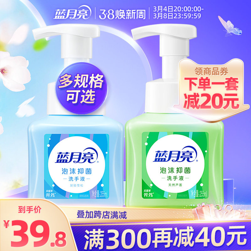 蓝月亮泡沫抑菌洗手液99.9%长效抑菌多香型255ml*2瓶正品家用