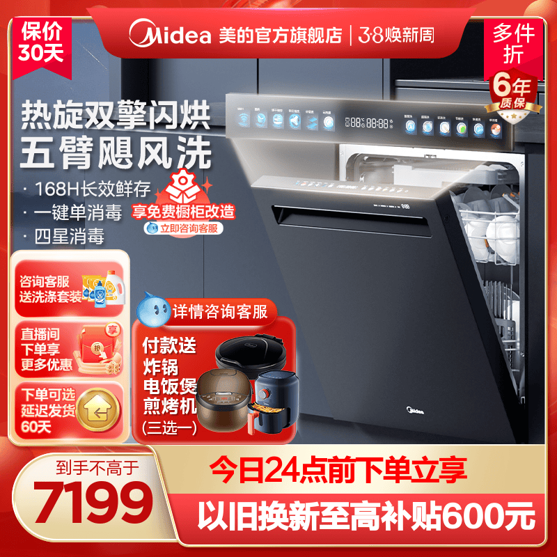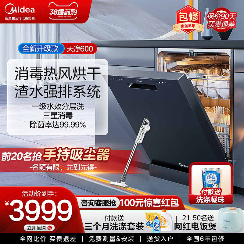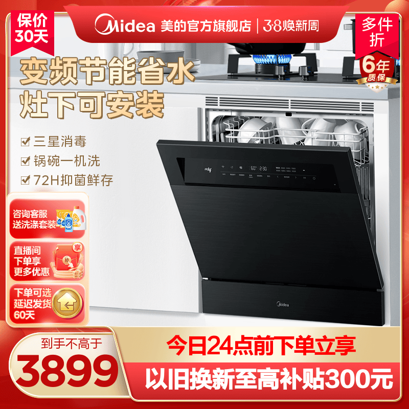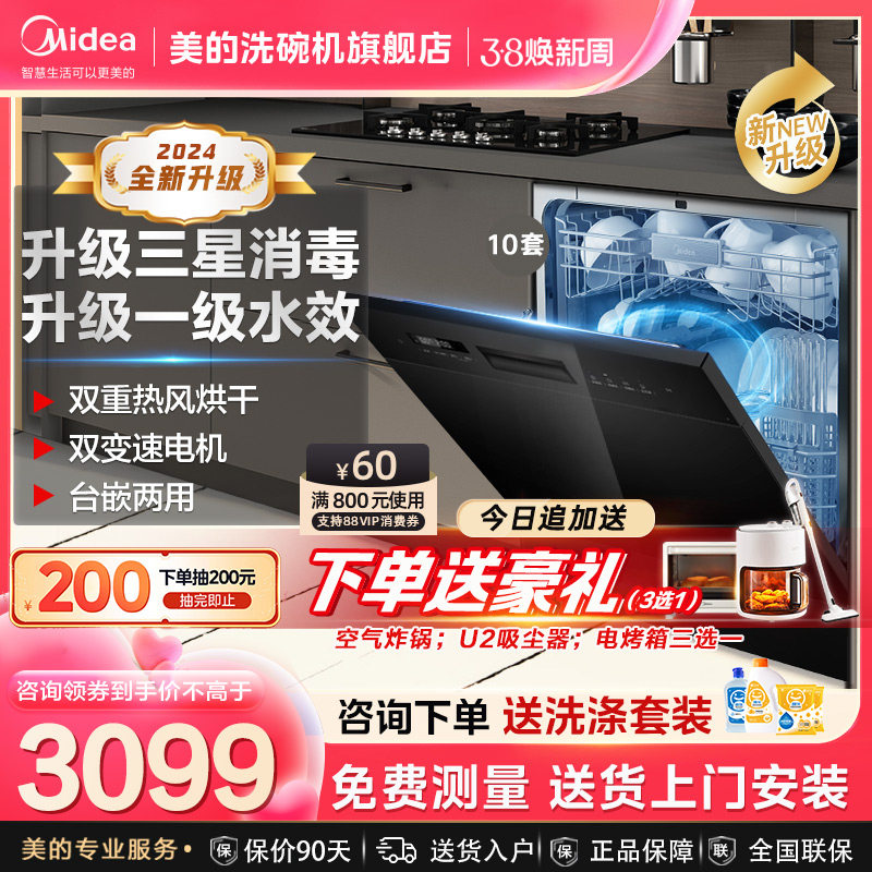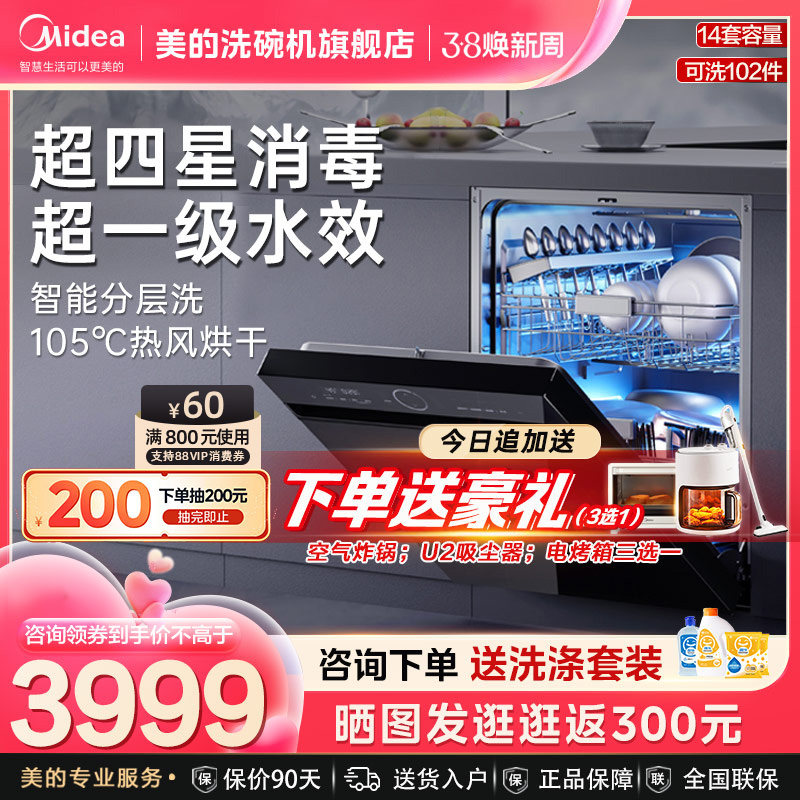 【新品】美的洗碗机家用全自动小型嵌入式消毒大容量14套RX600Max