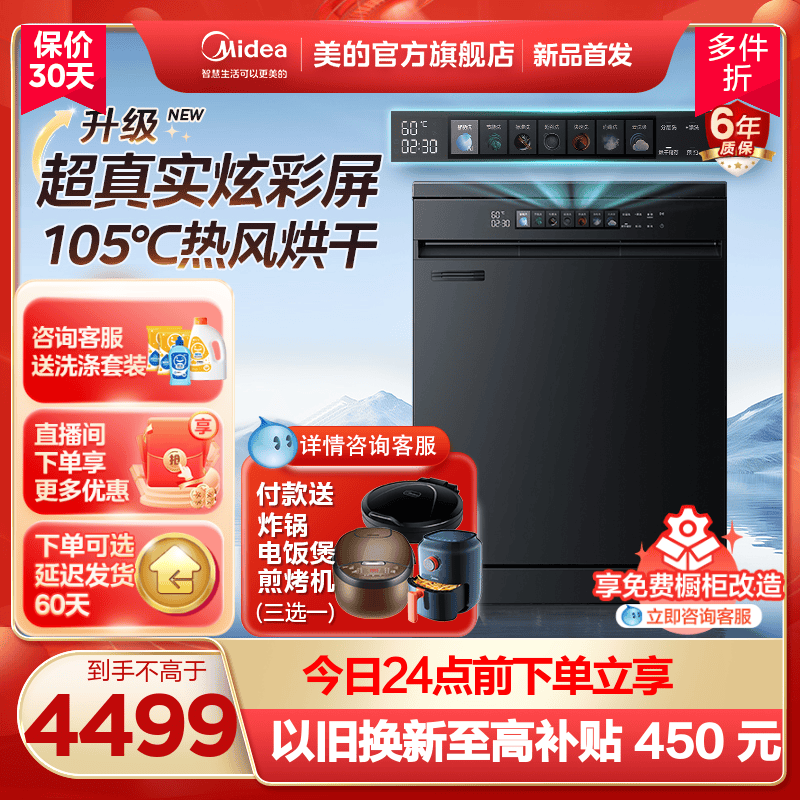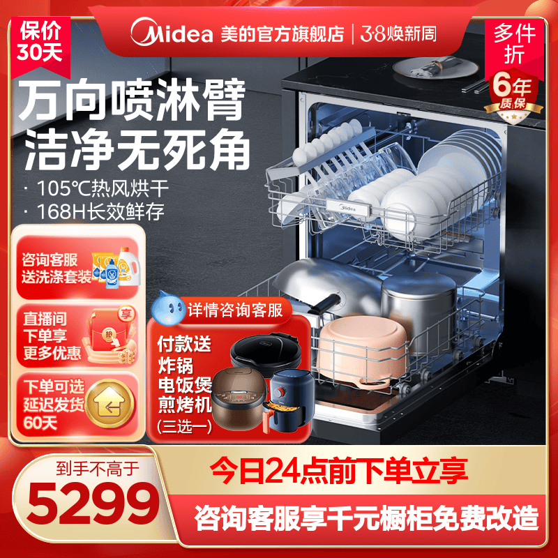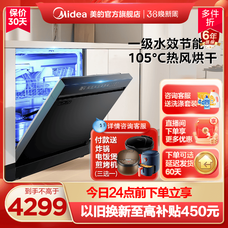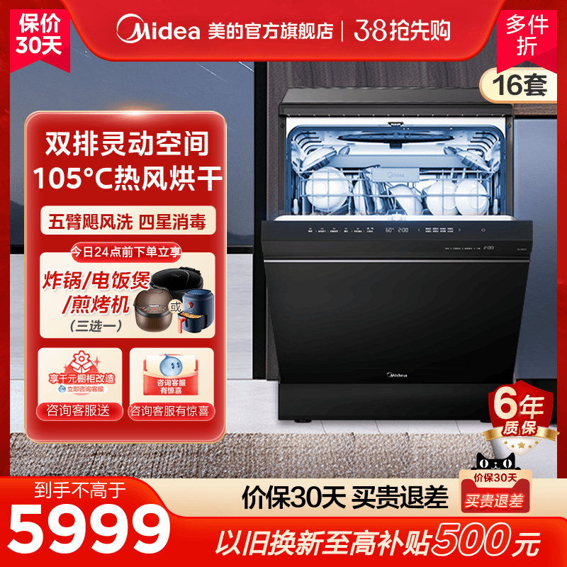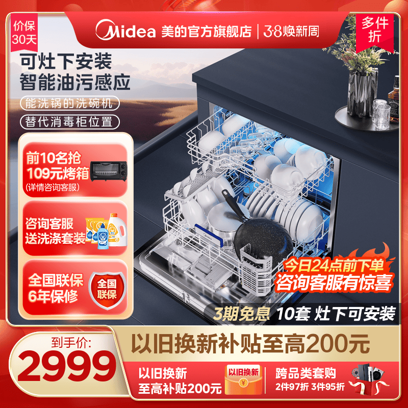 【新品】美的洗碗机家用全自动小型嵌入式消毒大容量14套RX600Max