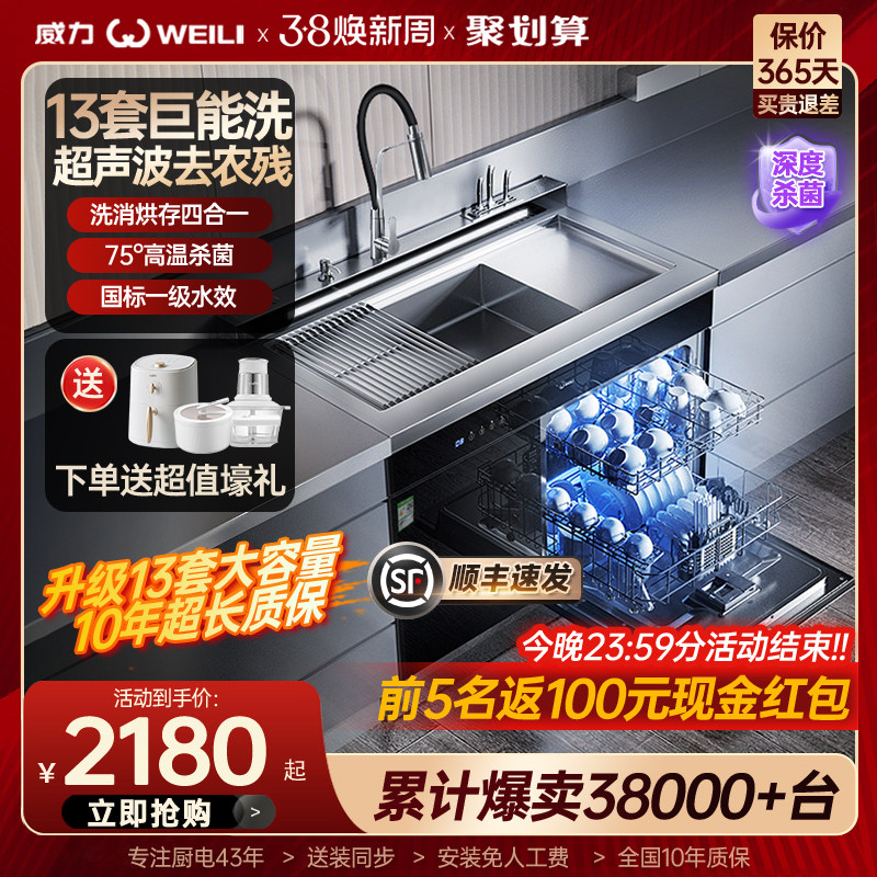 威力洗碗机集成水槽一体全自动家用嵌入式13套超声波大容量消毒