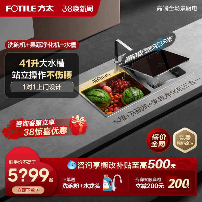 方太水槽洗碗机全自动家用小型CT03D台式集成水槽一体消毒旗舰店