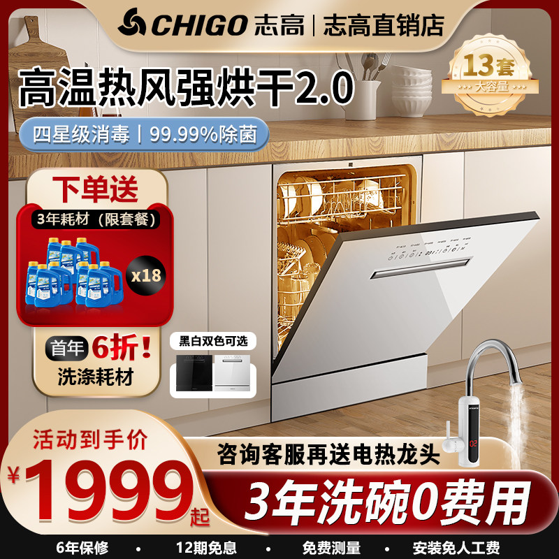 【天空之境】老板白色洗碗机13套嵌入式紫外全自动烘消毒一体F30X