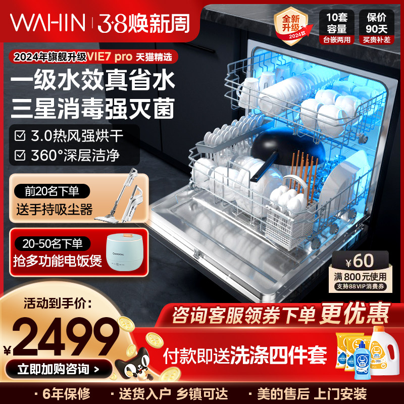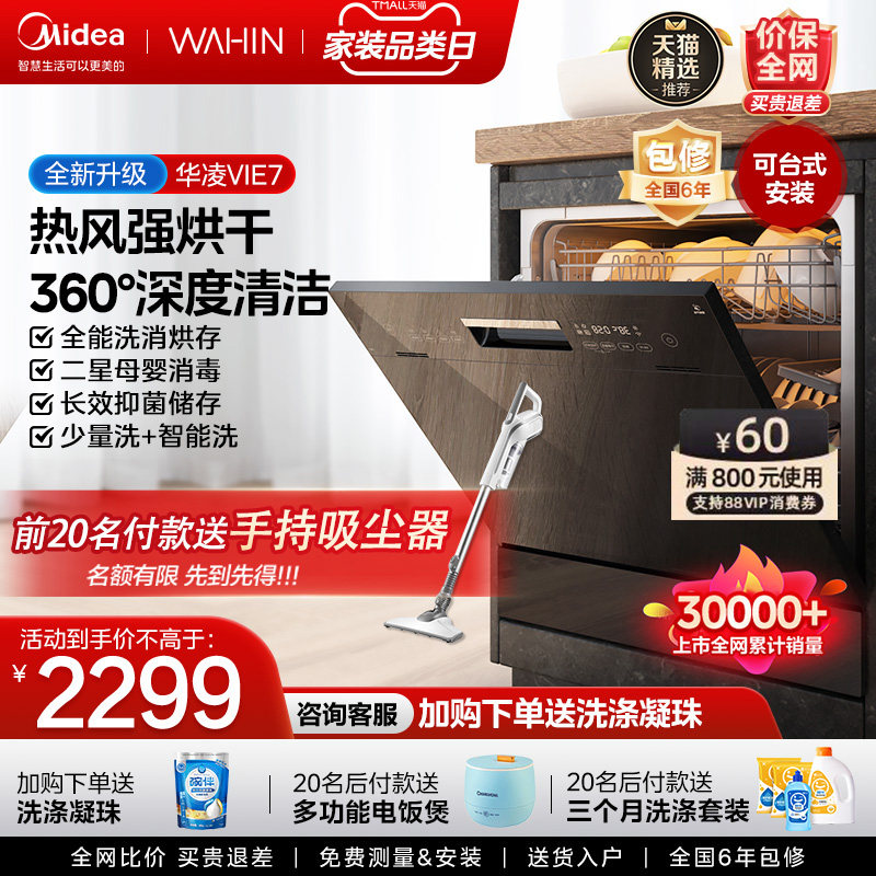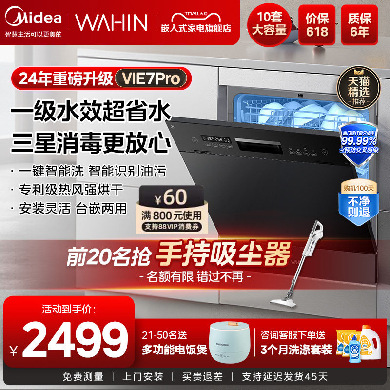 美的华凌Vie7洗碗机全自动家用大容量8/10套烘干台式嵌入式小型