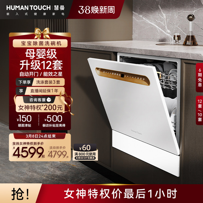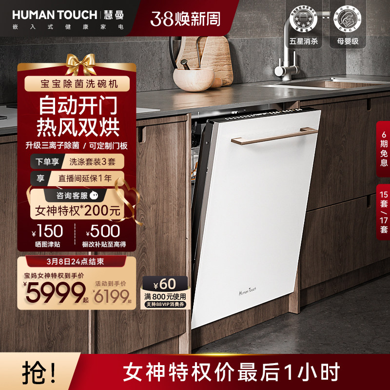 【重磅升级】慧曼15/17套S3白色宝宝除菌洗碗机全自动家用独嵌式