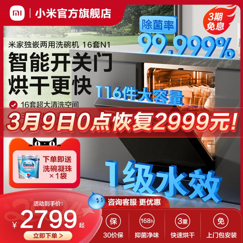 小米米家智能洗碗机12套S1全自动嵌入式大容量洗锅分层洗消烘存