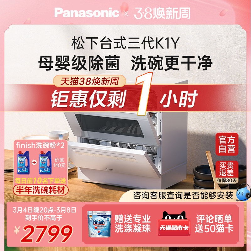 松下洗碗机全自动家用小型智能台式免安装官方5套除菌消毒柜刷碗
