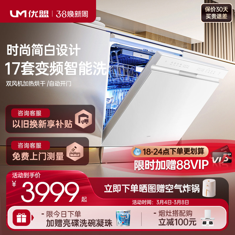 优盟UD17B洗碗机白色全自动家用大容量17套台式嵌入式小型消毒
