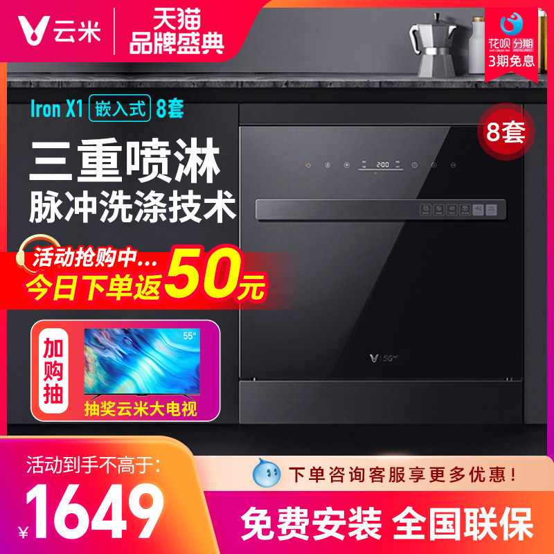 云米洗碗机全自动家用嵌入式8套刷碗机智能消毒烘干一体碗柜0803B