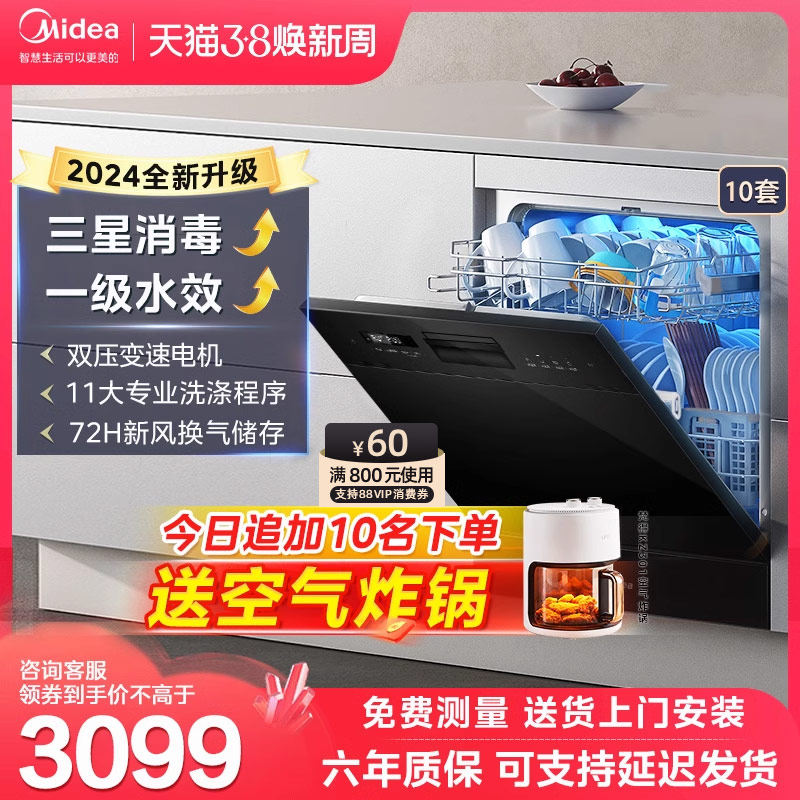 美的洗碗机嵌入式小型家用全自动【可灶下安装】大容量10套VX10