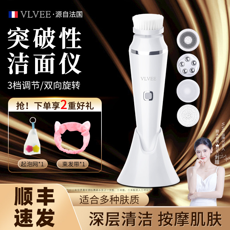 法国VLVEE电动洗脸仪洁面仪女洗脸神器毛孔清洁器硅胶刷美容导入