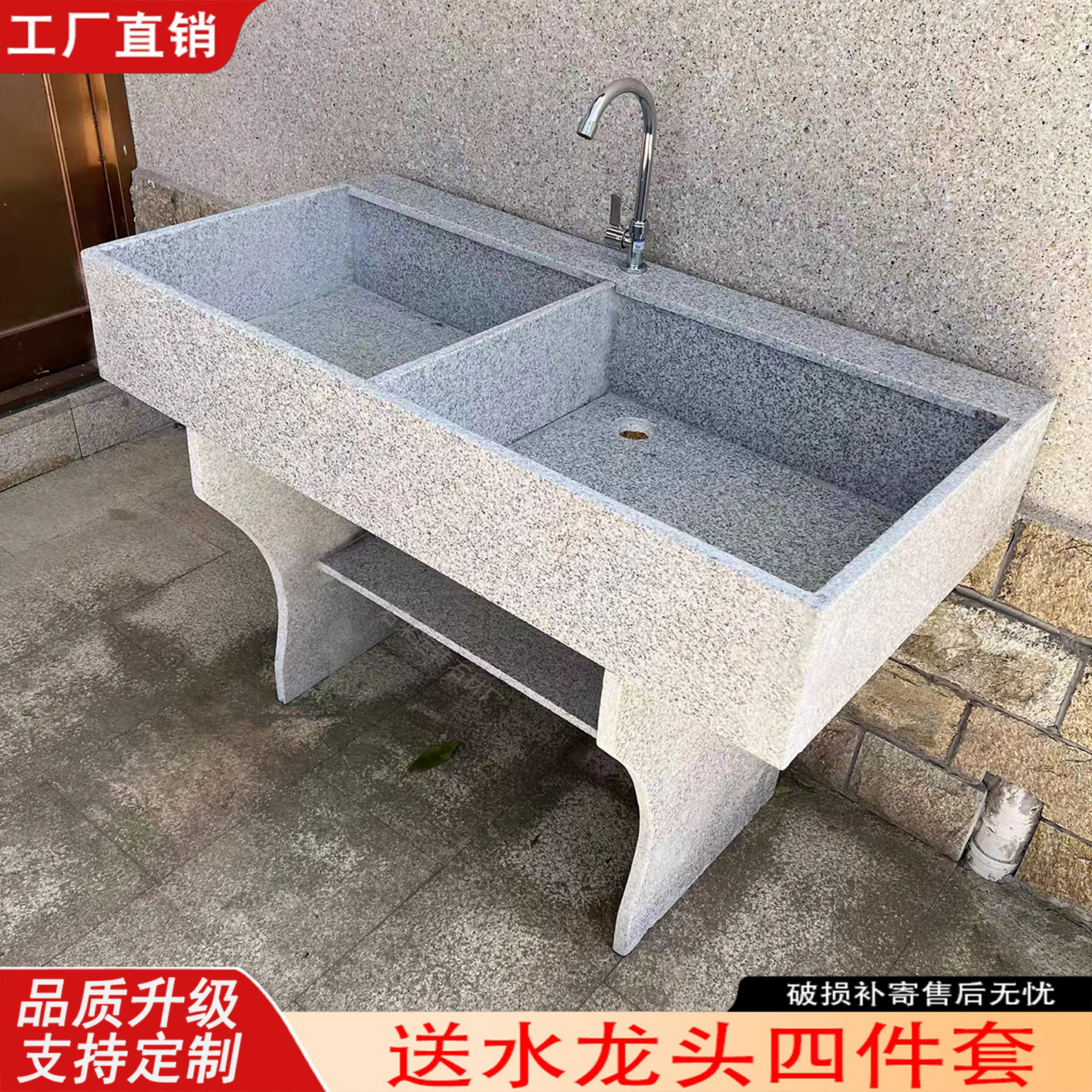 天然花岗岩洗衣池带搓衣板洗手池水槽户外庭院双水池洗衣台洗衣槽